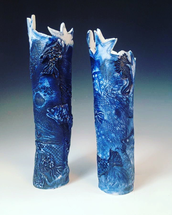 All of my life I have been creating things: paintings, ceramics, etchings, sculpture, scenery painting and costumes for the local after school program. My work is eclectic and symbolic. Colours and textures excite me. The themes of communication, travel memory and natural elements occur throughout my work. Music is an inspiration to me.